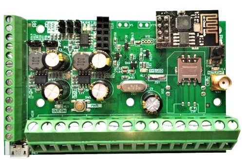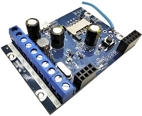 GSM пристрій професійного класу. Створення рішень елементів автоматики, управління контроль електроприладів, використання приладу з датчиками охоронної сигналізації. Контроль температури, управління приладами опалення, охолодження, кондиціювання. Прилад має 8 контрольовані входи, 8 виходів котрими керуємо відповідно налаштувань. Підтримка 8 адресних датчики температури. Підтримуються модулі розширення входів, виходів котрі підключаються на 485 порт розширення можливостей. Підтримка модулів Wi-Fi, безпровідних датчиків встановлення на головні платі.