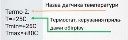 Режим термостата, керована температура встановлюється СМС командою також можна СМС командою перевірити значення встановленої температури для приладу обігріву.